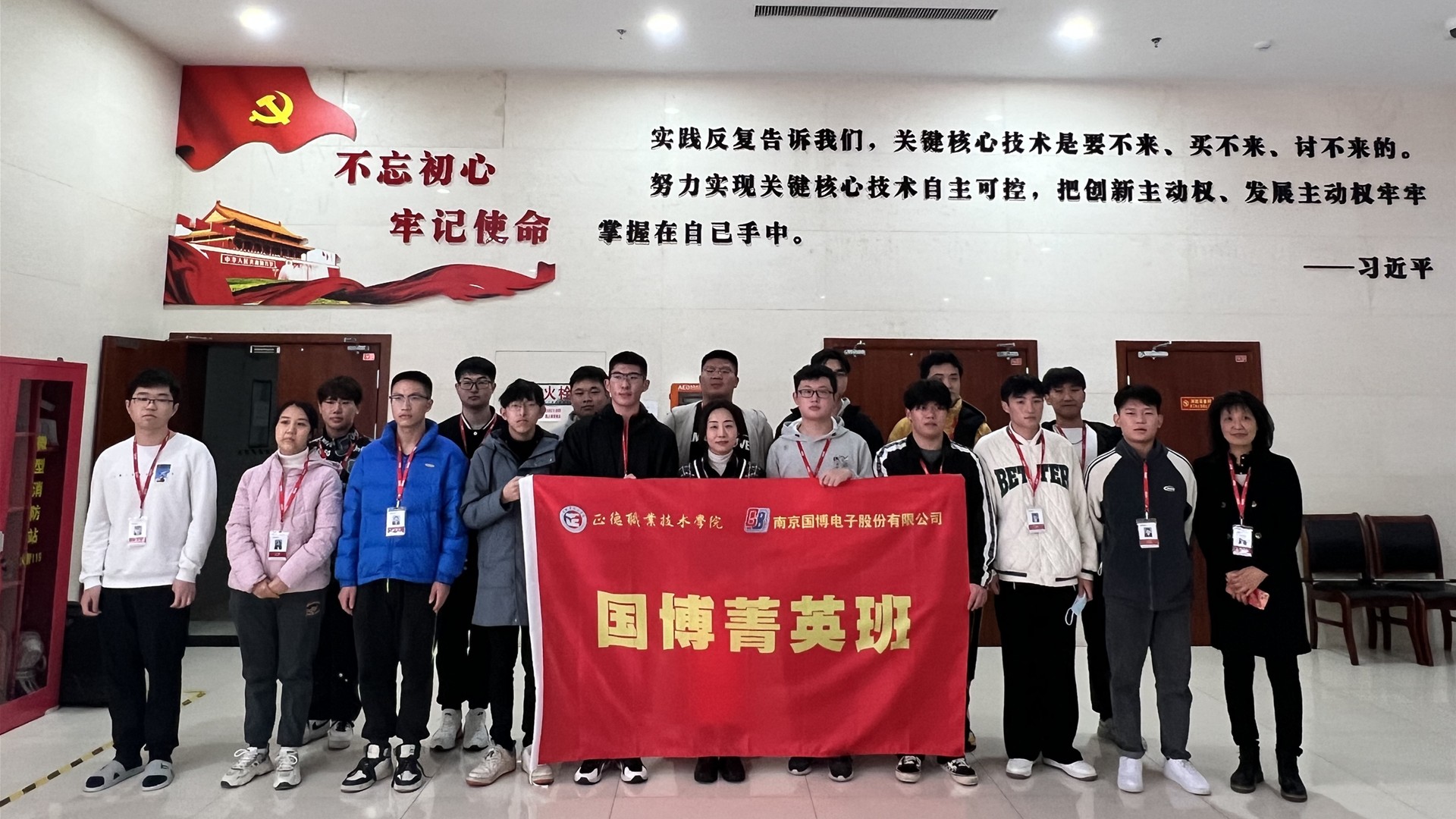 11月29日下午,首期“国博菁英班”开班典礼暨产业教授聘任仪式在南京国博电子股份有限公司隆重举行。国博公司副总经理孙春妹、人力资源部总经理王家波、招聘主管韦静,我院副院长江爱华、教务处副处长兼校企合作办主任陆松、汽车与机电工程系系主任任丽君、民用航空系系主任吴慧、电子与信息技术系副教授刘佳出席活动。