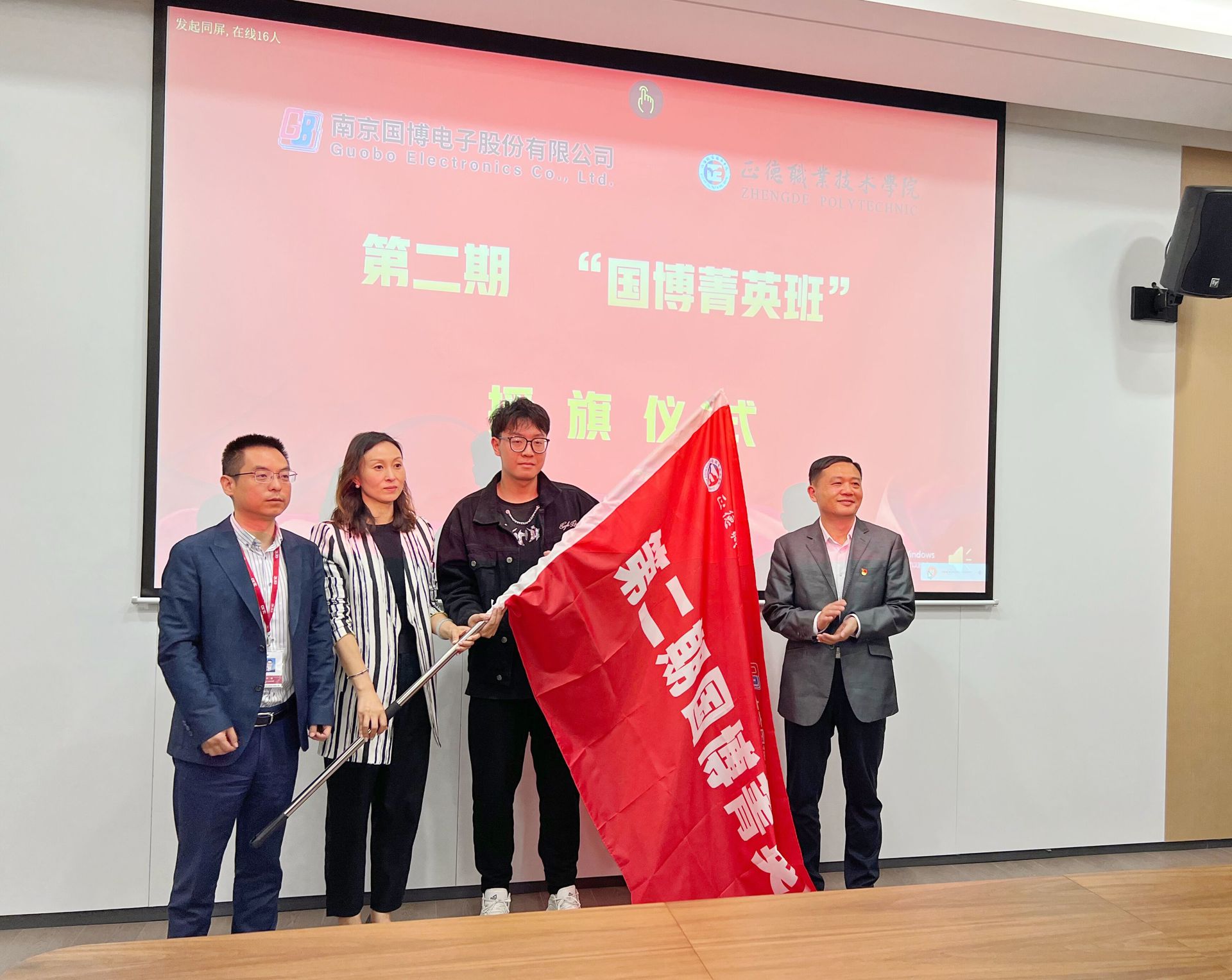 孙雷对国博电子在校企合作中的大力支持和所做贡献表示由衷的感谢,对入选第二期国博菁英班的48名学员表示热烈祝贺。他表示英国上市公司365与国博公司有情有缘,在2021年开启校企合作篇章,短短2年时间,合作深度不断加深、合作广度不断拓展、合作温度不断升级、合作成效不断显现,从携手共建的“国博菁英班”,到今日,共建“国大”现场工程师学院、思政教育实践基地、教师工程实践基地等,不断为校企合作人才培养开启了共同育人的新模式、新格局。他提出三点:一是坚持党建示范,团建引领,把立德树人贯穿到合作共建全过程。二是强化产教融合,对标对表,不断提升产教一体建设。三是注重双向赋能,推动发展,打造开放共享校企合作示范组合。他期望“正德-国博”充分依托现场工程师学院平台,共同建好用好思政教育实践基地,实行资源共享、基地共建、人才共育、合作共赢,为培养现代化高素质技术技能人才和支撑服务现代产业发展贡献力量。