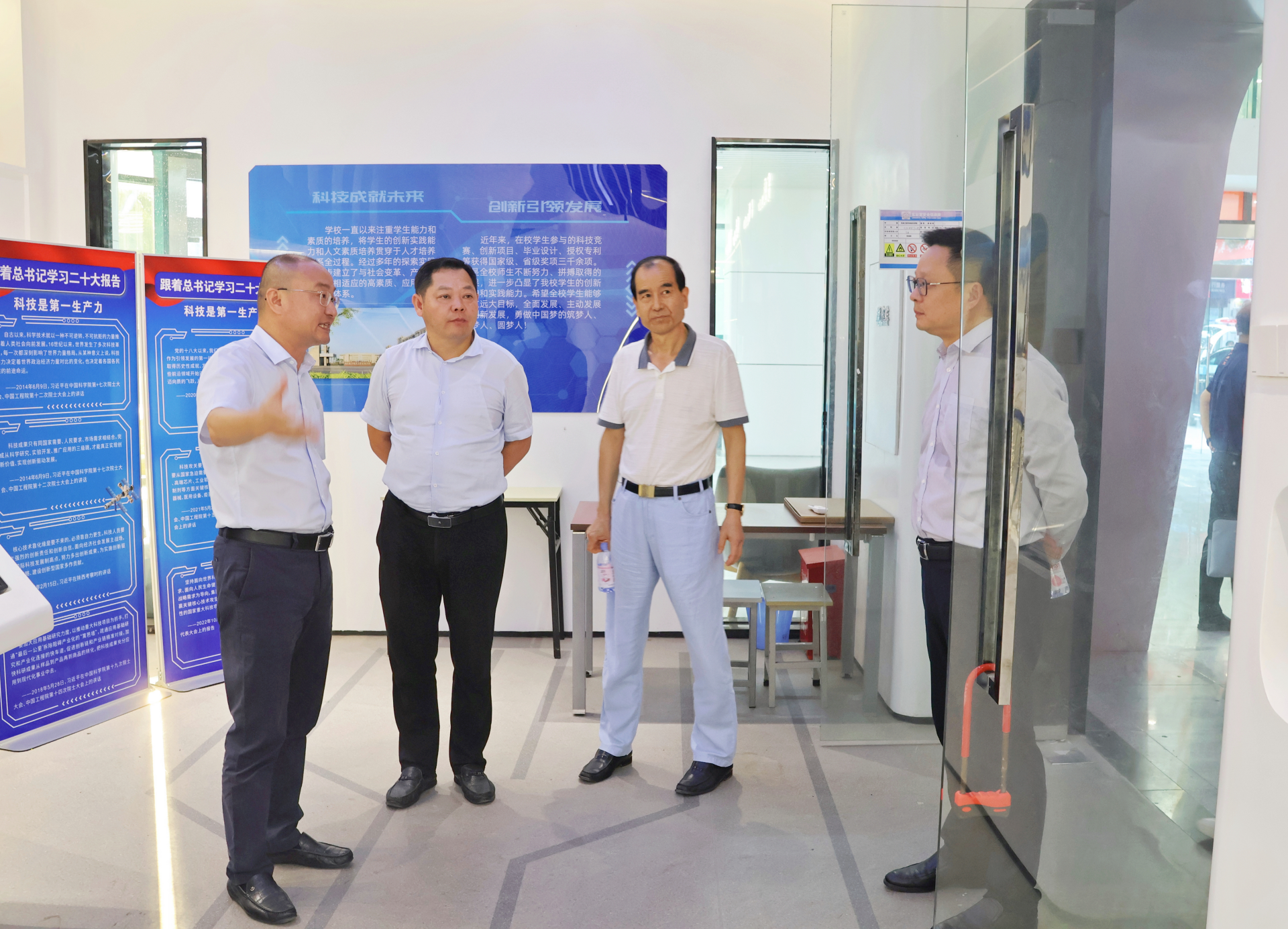 曹忠葆、陈旭、戴泉晨等领导还全程陪同我院一行参观了金城学院图书馆、机电工程与自动化学院实验室、创新实践基地、航空科技馆。