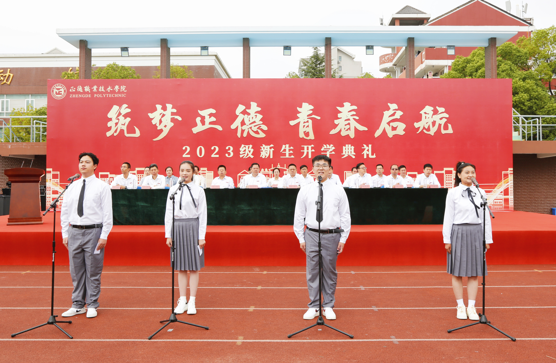 新生代表们带来的朗诵《正德,我的梦想在此启航》,展现了全体新生对未来正德生活的憧憬,更表达了新生心怀家国、锤炼知识、放飞职业理想的愿望。