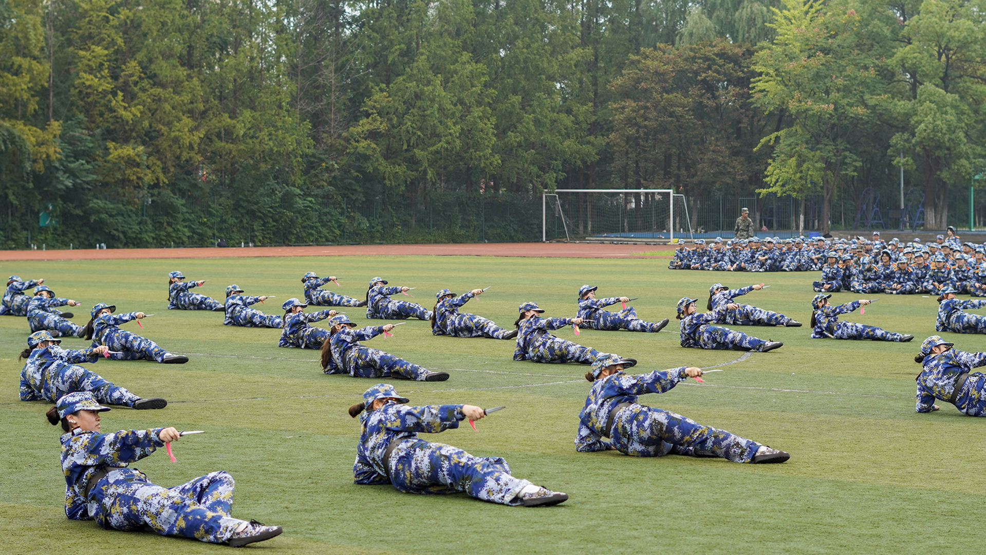 在军体拳、匕首操科目展示中,同学们挺拔如松、训练有素、果敢勇毅、气贯长虹。