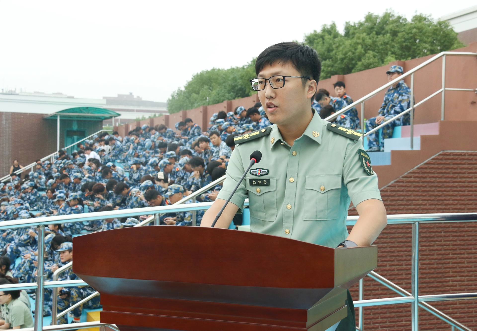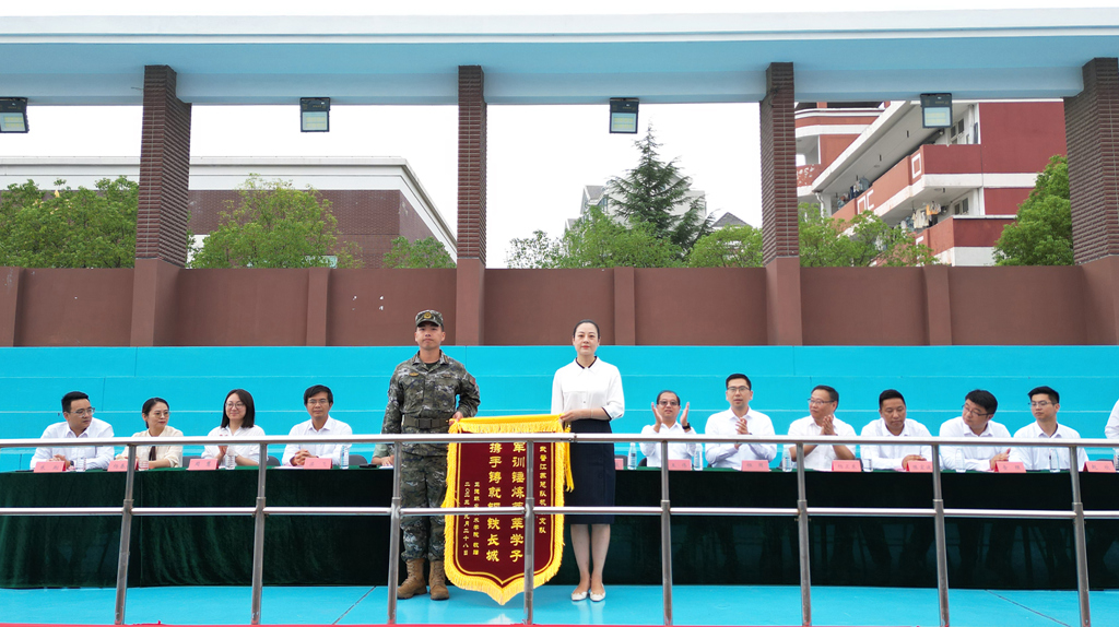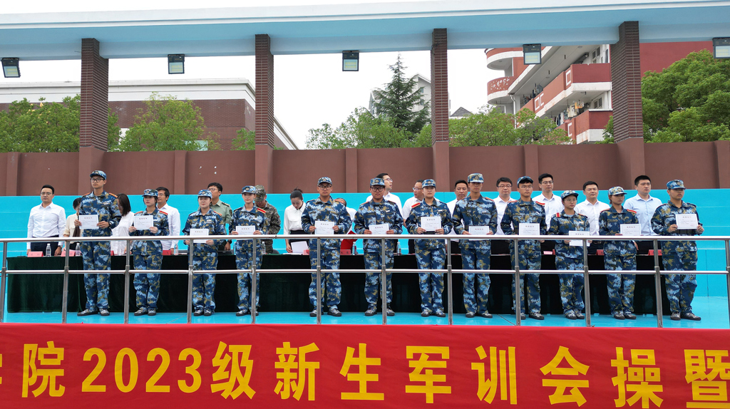 军训工作领导小组成员为军训内务卫生先进单位、优秀学员代表、军训标兵代表、军歌大合唱获奖单位及军训优秀教官分别颁发了荣誉证书。