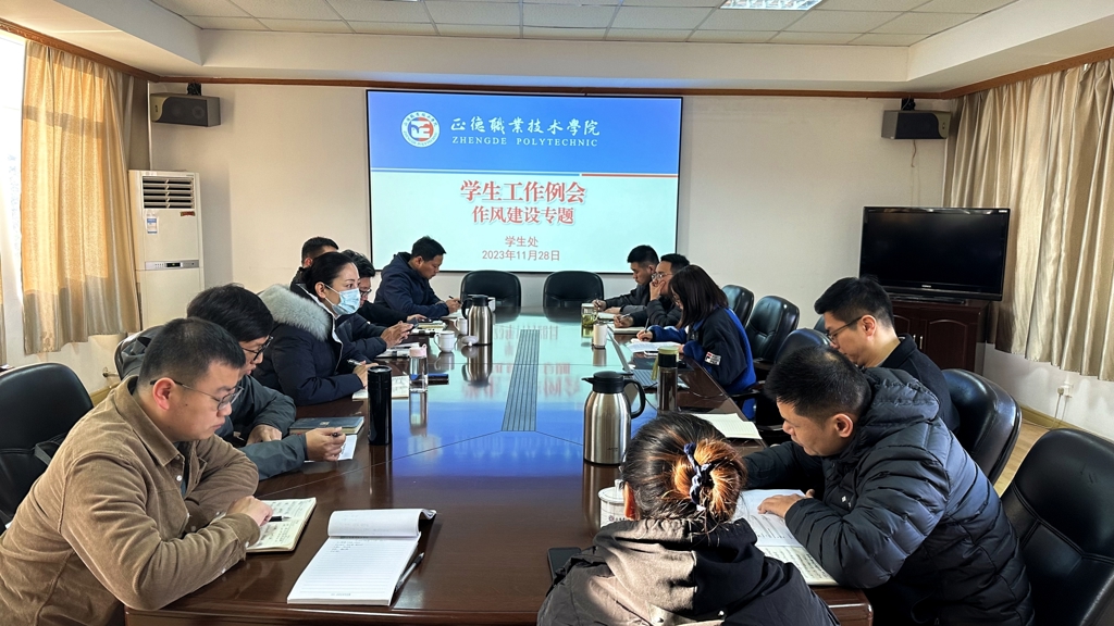 为贯彻落实学院推动作风建设工作要求,进一步加强学工队伍作风建设,提升管理服务工作效能。11月28日,我院在行政楼二楼会议室组织召开学工队伍作风建设专题会。党委副书记、副院长梁薇,院长助理王健,学生处、团委负责人,各系分管学生工作负责人参加会议。会议由学生处处长祝佳俊主持。