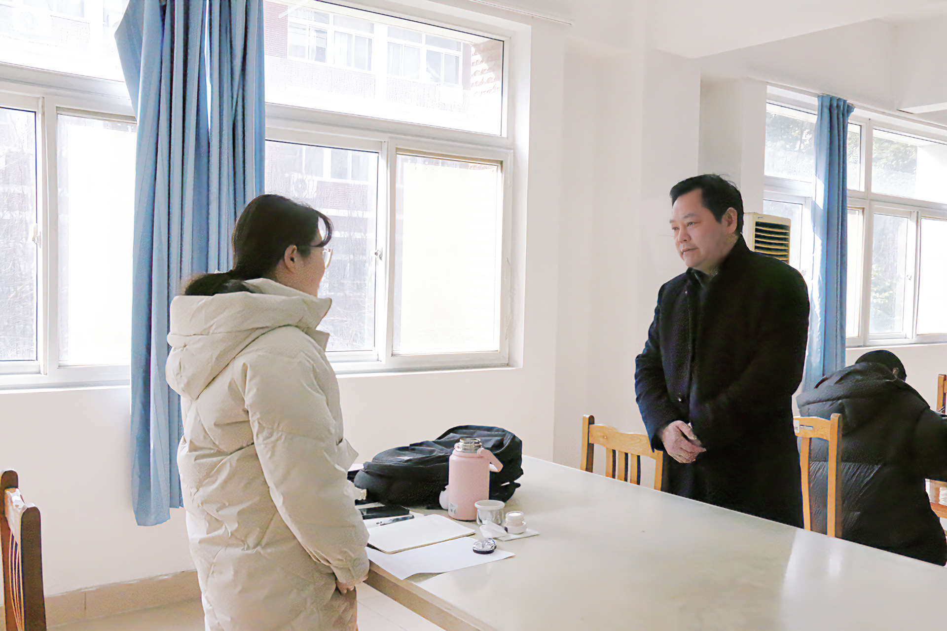 院领导走进办公室,与教职工深入交流,了解课程教学以及学生返校等情况,勉励大家要积极主动作为,将立德树人贯穿到教育教学全过程,关心关爱学生,努力提高教育教学质量,把工作做深做细做实。