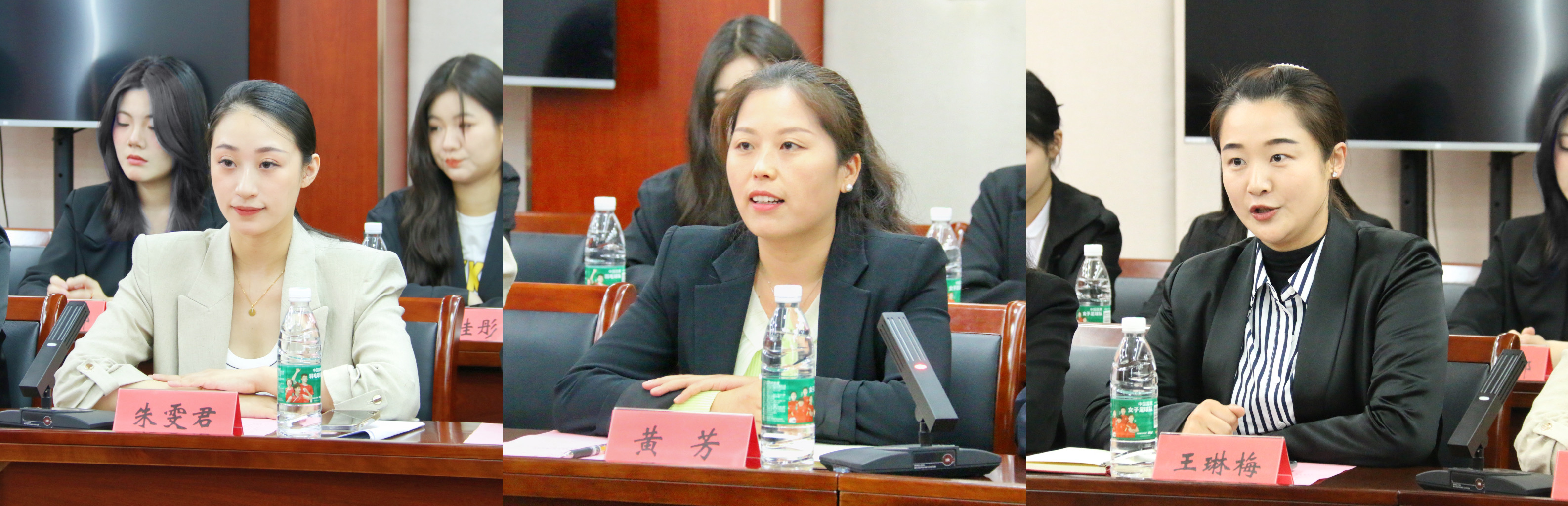参赛学生代表艺术设计与建筑工程系陆凌岩、电子与信息技术系傅佳仪等依次分享了自己的参赛体会与成长心得,感谢学院对团队的关心和支持,表示要以此次大赛为起点,不断提高自己的舞蹈技艺和综合素质。