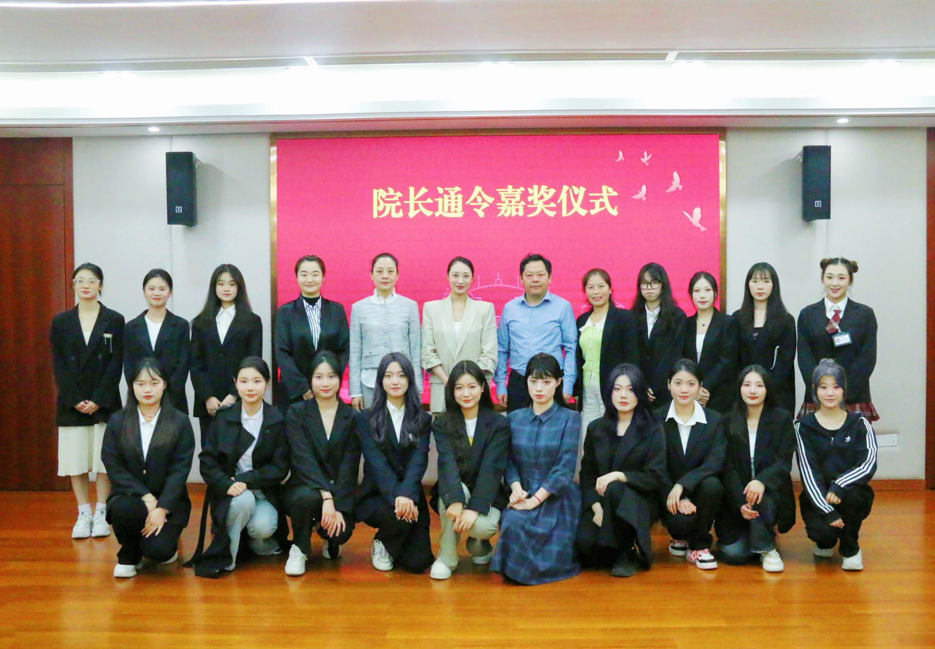 4月18日下午,我院举行院长通令嘉奖表彰仪式,表彰在2023年江苏省第七届大学生艺术展演中荣获舞蹈专项甲组一等奖及“优秀创作奖”的《天梦》舞蹈团队。院长孙永荣、副院长梁薇、获奖师生及相关部门负责人参加仪式。仪式由学生处处长祝佳俊主持。