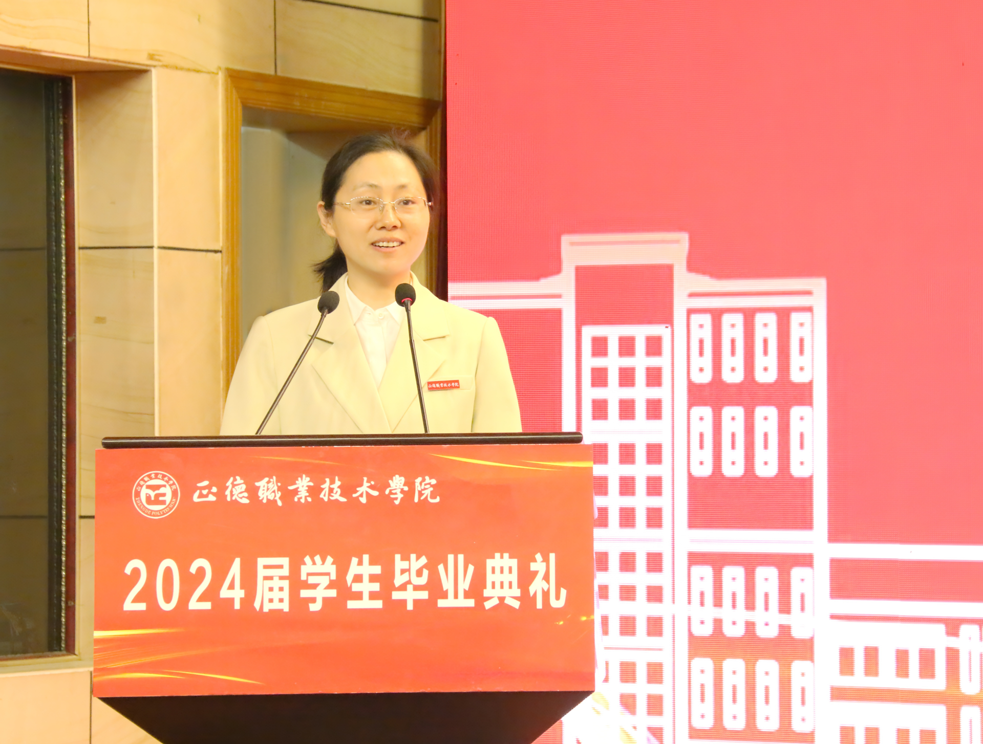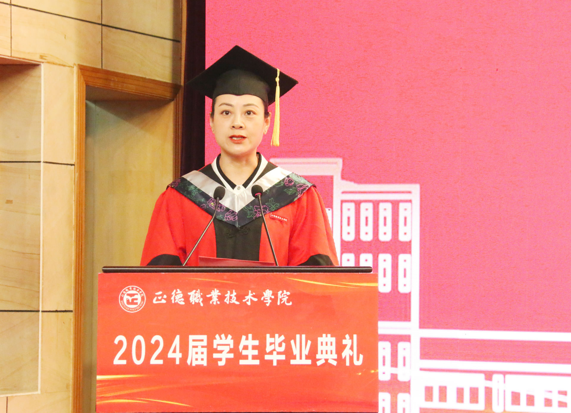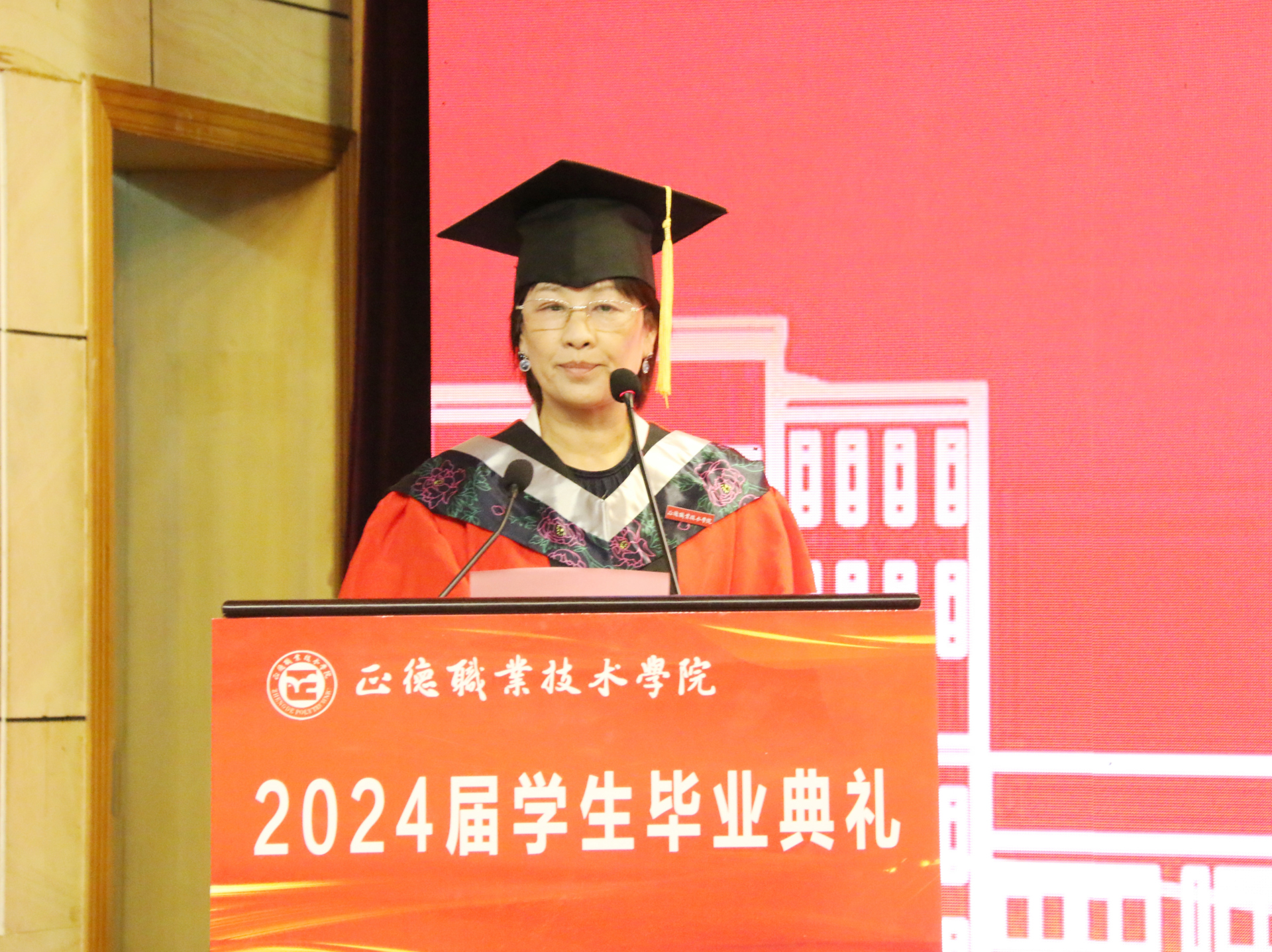 孙永荣代表学院向毕业生们送上诚挚的祝贺和美好的祝福。他指出,三年来同学们在学院接受了知识的洗礼,技能的锻炼和人格的熏陶,用实际行动践行“孝、宽、诚、责、毅”五字文化,大家努力拼搏,不断超越自我,努力书写求学深造、开拓创新、见义勇为的精彩故事,每一个同学都是学院的骄傲。临别之际,他向全体毕业生提出三点希望:一是要不忘初心,坚守人生底色。坚定那份追逐梦想的决心,保持独立思考,客观面对现实,理性对待梦想,脚踏实地,砥砺前行。二是要秉承匠心,传承工匠精神。既要有追求卓越的态度,还要有止于至善的技艺。在今后的工作学习中,不断用工匠精神要求自己、打磨自己,锻造出过硬本领。三是要坚定信心,成就精彩人生。敢于尝试,敢于创新,在实践中不断的突破自我,实现自我超越,勇往直前,用勤劳的双手和智慧的头脑去创造各自的辉煌人生。