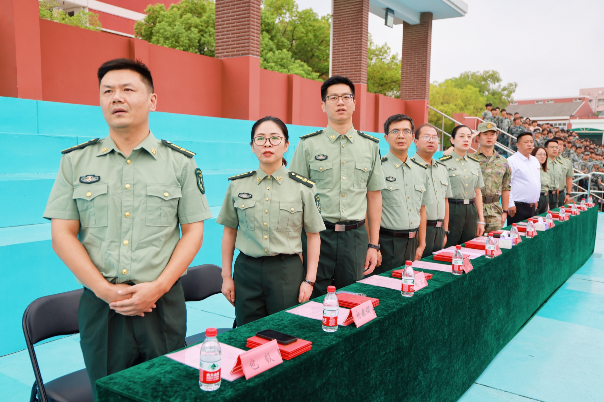 最后,在《歌唱祖国》的合唱声中,2025级新生军训总结表彰暨成果汇报大会圆满结束。