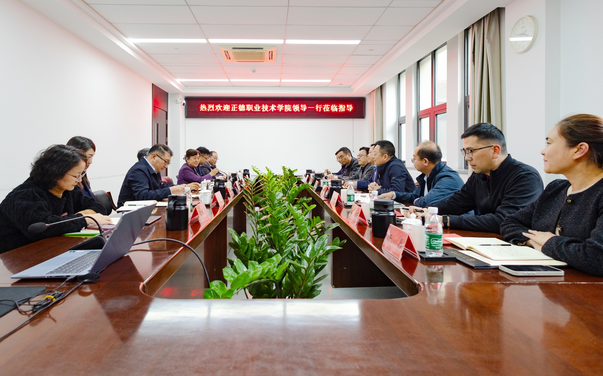 蒋伏心校长代表钟山学院,对我院一行的莅临指导表示热烈欢迎。他指出,钟山与正德多年来结下深厚情谊、保持常态化交流。当前民办高职教育正处于机遇与挑战并存的关键阶段,探索可持续发展路径至关重要。其中,校际合作被视为推动民办高职协同发展的重要途径。他表示,作为同类型的高职院校,期望双方能够建立深度合作关系,持续深化交流合作,充分发挥优势专业互补效能,构建校际协同发展、合作共赢的新格局,为职业教育高质量发展注入新动能。特别是在专业课程共建、实训资源共用、师资队伍互派等方面实现资源共享,优势互补,互利共赢,进一步提升双方办学质量与人才培养水平。
