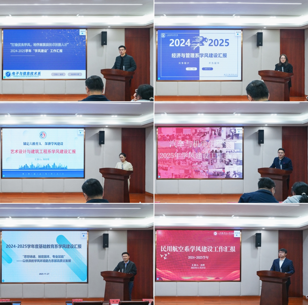 各系分管学生工作的负责人围绕学风建设的思路、举措和成效总结了2024-2025学年的重点、亮点及特色工作,同时以详实的数据、丰富的图片和典型的工作实例对学风工作成效进行展示。各系既比拼工作实绩,也交流经验心得,充分展现了我院学生工作队伍的专业素养和风貌,赢得了现场观众和评委的阵阵掌声。由教务处、学生处、党群工作部等部门主要负责同志共计6人组成的评委组,根据评选工作要求,本着公平、公开、公正原则,针对各系的工作汇报进行评分。