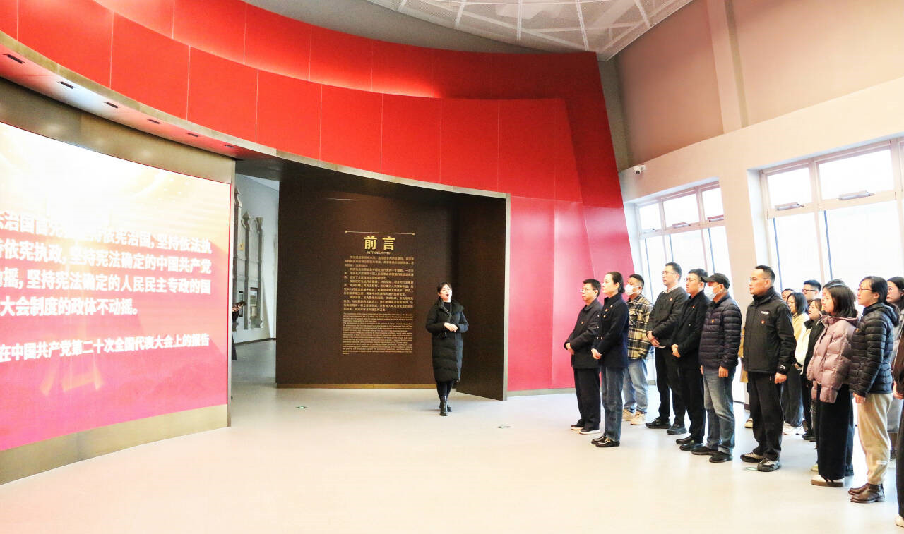 作为全国首个全景式宪法主题教育基地,南京宪法公园以“庄重庄严、纯净纯粹”为设计理念。在讲解员的引导下,党员们首先参观了“宪法宣传教育展”,沿着“寻宪、制宪、修宪、奉宪”的展陈脉络,沉浸式感受宪法的发展历程与时代价值。展览通过文物文献、动态影像、场景复原等多种形式,生动展现了宪法作为国家根本法的权威与力量。