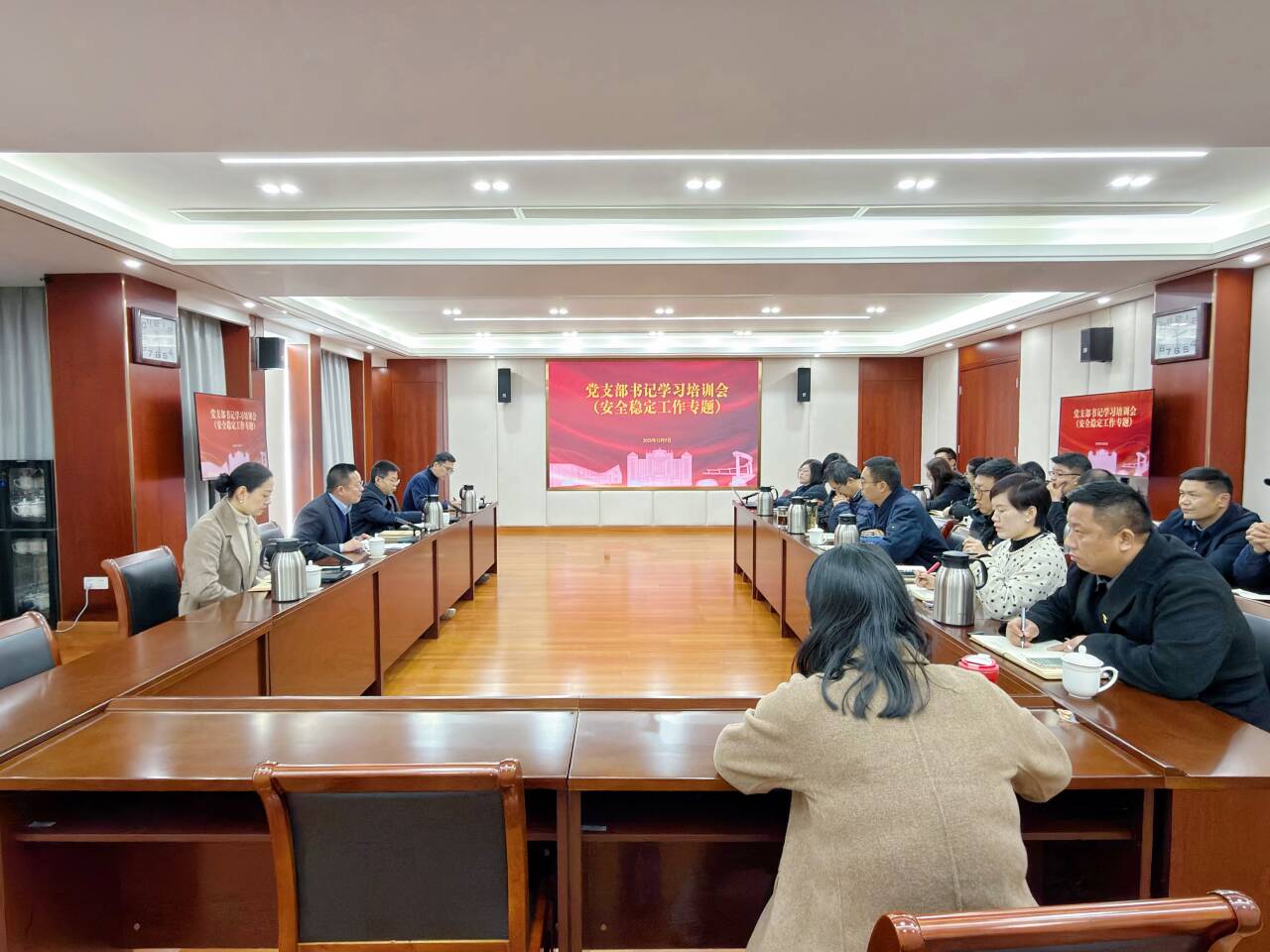 12月9日下午,我院党支部书记学习培训暨安全稳定工作专题会议在5201会议室召开,院党委书记、政府督导专员孙雷,党委委员、副院长高斌,党委副书记、副院长梁薇,党群工作部、后勤保卫处负责人,全体党支部书记参加会议。会议由孙雷主持。