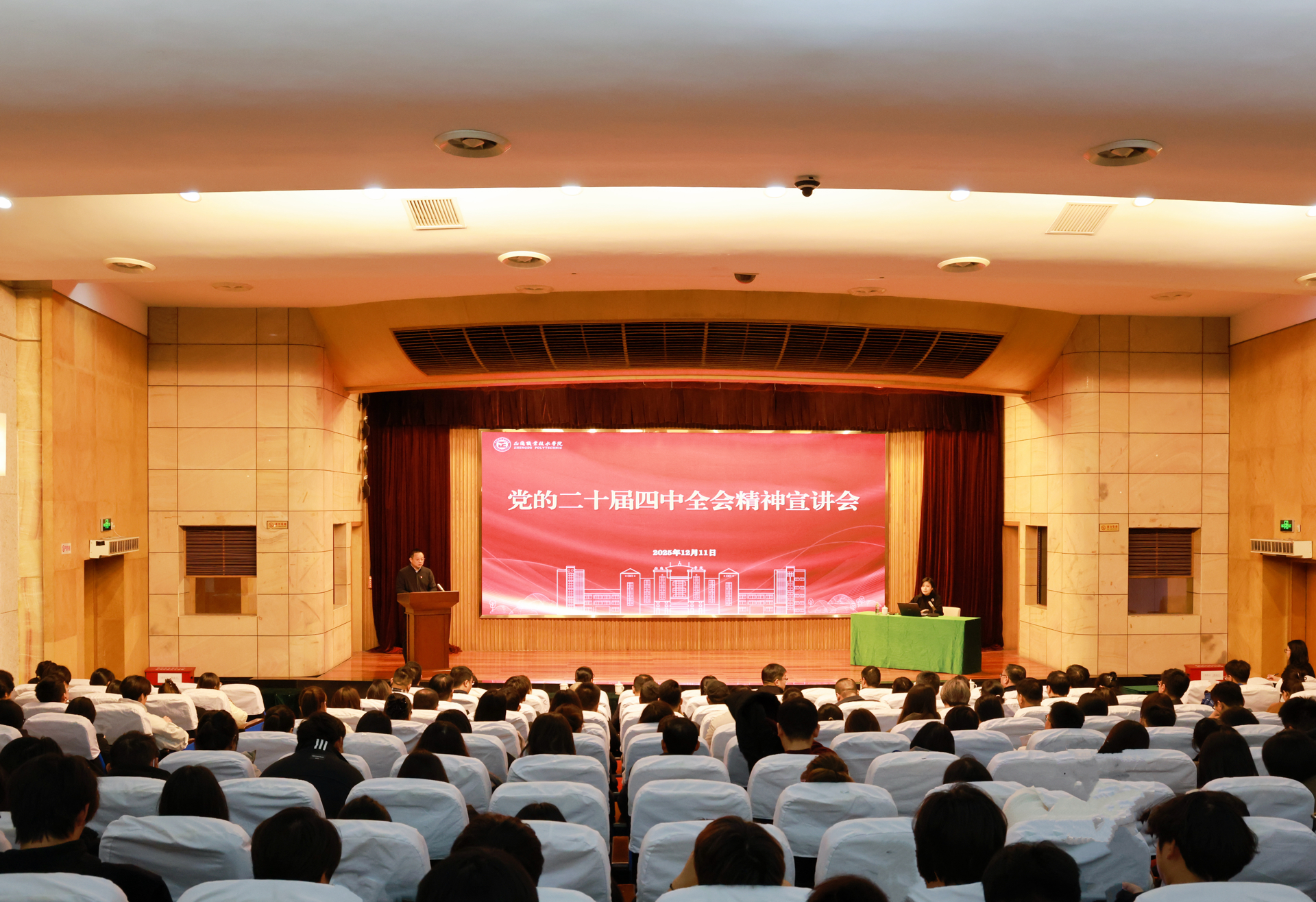 12月11日下午,我院邀请全省教育系统宣讲团成员、南京航空航天大学马克思主义学院党委书记何畏教授在报告厅开展党的二十届四中全会精神专题宣讲。全体院领导、院长助理、党委委员、纪委委员、中层干部、思政课教师,辅导员及学生代表参加宣讲会。会议由院党委书记、政府督导专员孙雷主持。