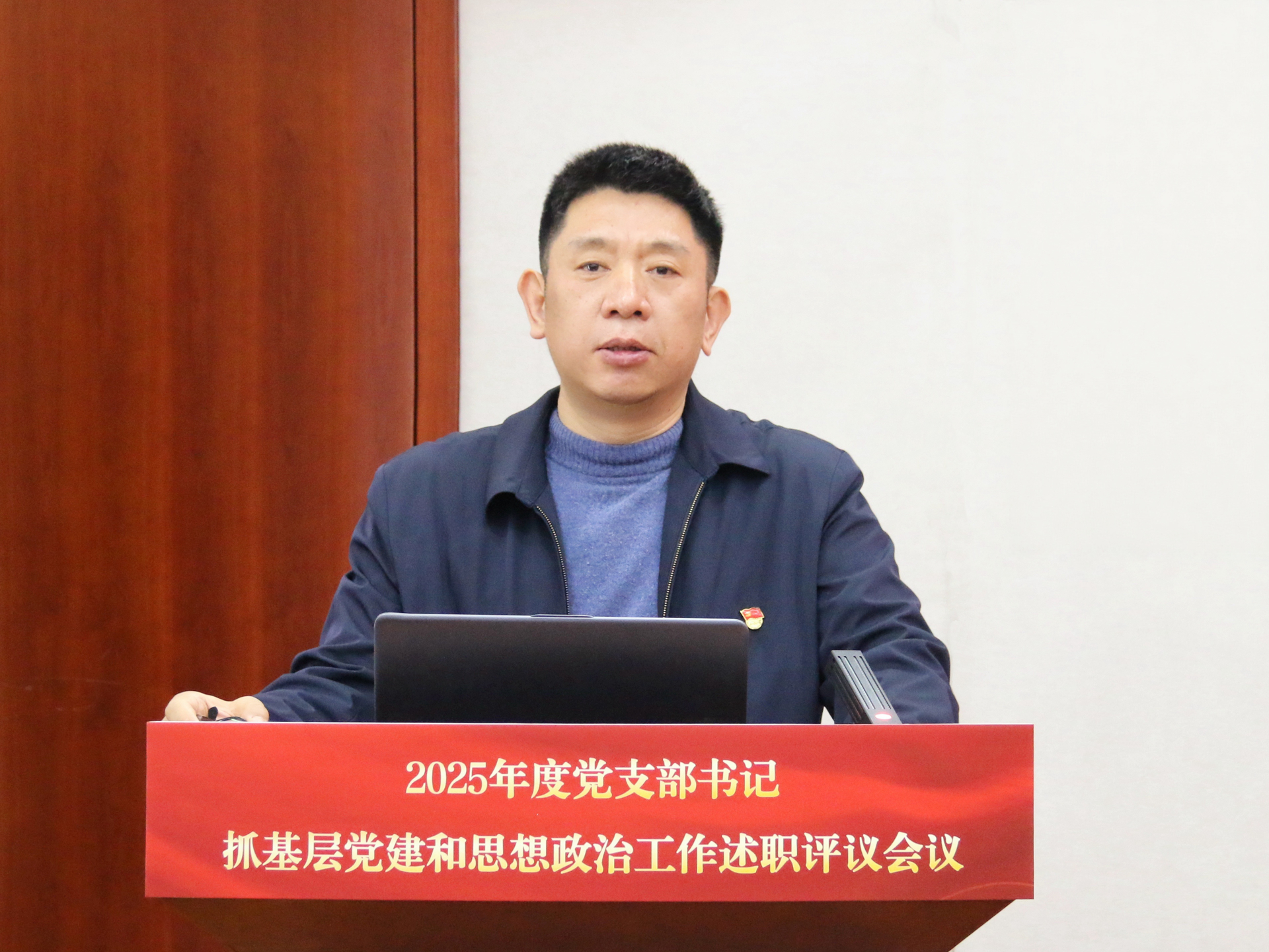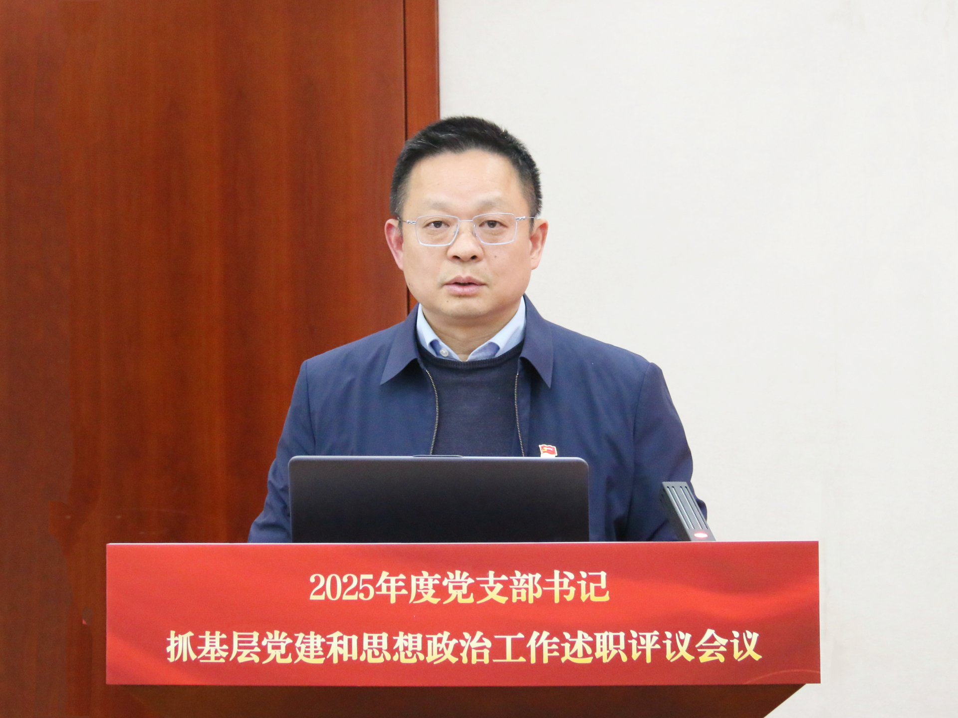 1月7日下午,学院组织召开2025年度党支部书记抓基层党建和思想政治工作述职评议会议,全体院领导、党委委员、各单位主要负责人参加会议。省教育厅组织处二级调研员王峰同志、省委组织部组织三处一级主任科员许颖同志到会督查指导。会议由院党委书记、政府督导专员孙雷主持。
