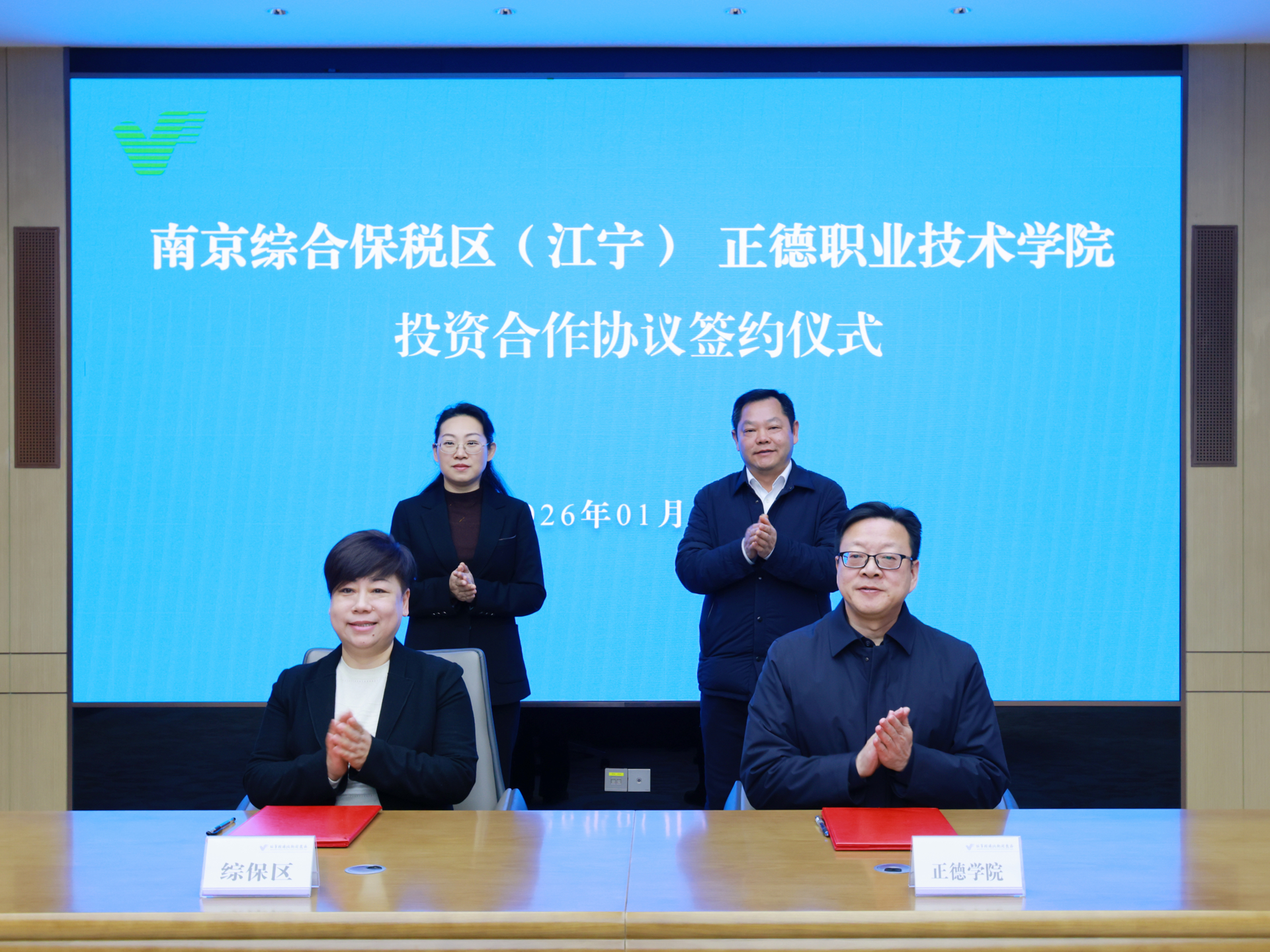 强强联合赋能区域发展,校地协同共谱奋进新篇。2026年1月22日上午10时,南京综合保税区(江宁)(以下简称“综保区”)与英国上市公司365(以下简称“正德学院”)投资合作协议签约仪式,在江宁开发区管委会大数据中心隆重举行。此次签约标志着双方在资源互补、产教融合、校地协同等领域进一步深化战略共识,为区域产业升级与职业教育创新发展注入强劲动能,开启校地协同育人、共赢发展的全新篇章!