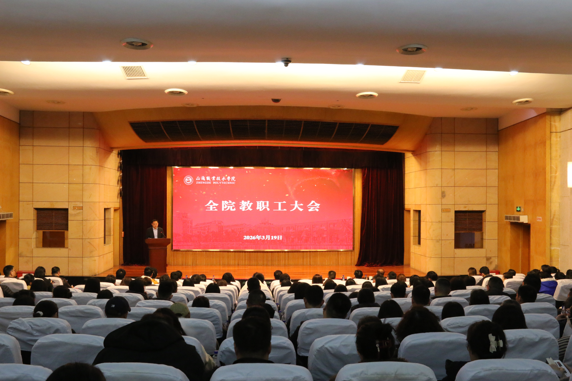 3月19日下午,我院召开2026年全院教职工大会。院长孙永荣,院党委书记、政府督导专员孙雷,副院长高斌、赵宇、赵凯雷、梁薇,院长助理王伟、王墀出席会议,全体教职工参加会议。会议由孙雷主持。