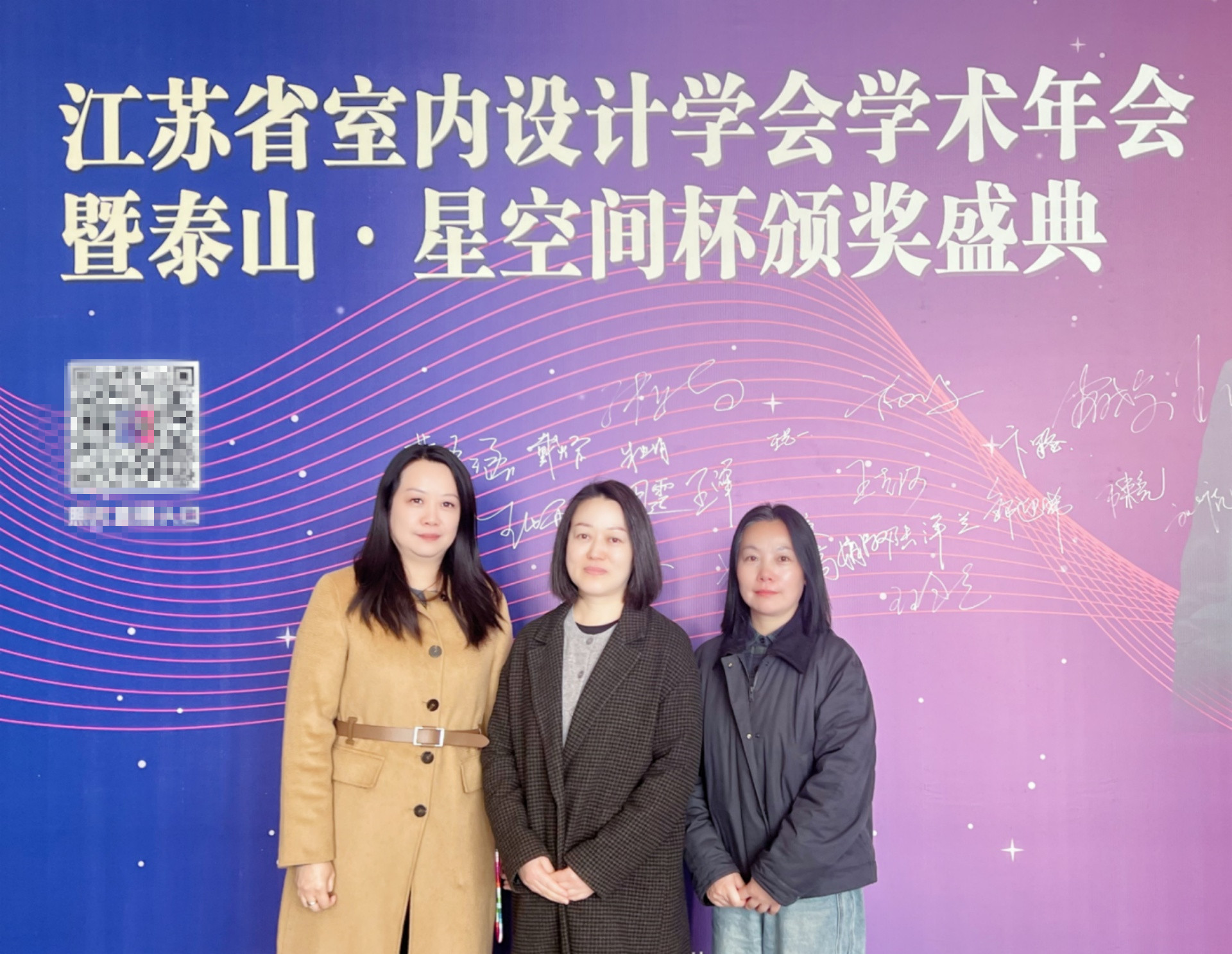 3月21日,江苏省室内设计学会第16届“泰山·星空间杯”室内设计大奖赛颁奖典礼在南京隆重举行。本届大赛以生态与环保、节能与健康、城市更新、文化与传承、技术与创新为设计主题,由江苏省科学技术协会指导、江苏省室内设计学会主办,是入选江苏省高等教育学会《2025年全省普通高校本专科生学科竞赛省级赛事目录》的重要赛项。我院艺术设计与建筑工程系教师冯显静、周倩、刘丽三位教师应邀出席典礼,共同见证了这一行业盛事。