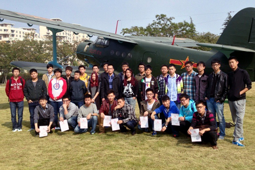 学生们纷纷用飞机做合影的背景