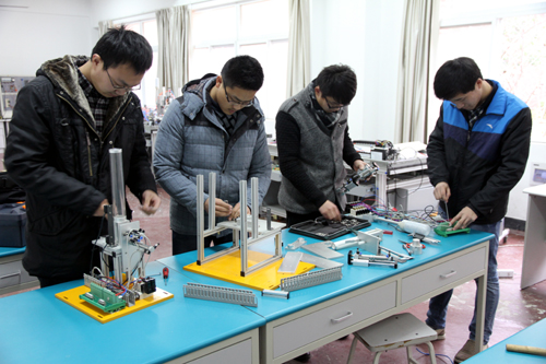 实训教室内学生在仔细检测