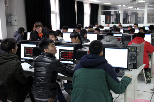 机房内学生在上机操作