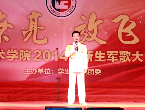 9月24日晚,我院2014级新生“军歌嘹亮,放飞梦想”军歌大合唱比赛在学院田径场拉开帷幕。院党委书记、副院长左彤云,各系学生工作负责人、团总支书记、全体军训教官出席并观看了比赛。