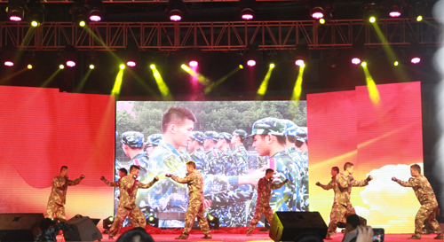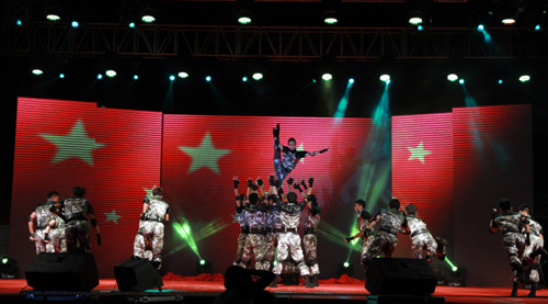 我院大学生艺术团表演的群舞《迷彩英雄》
