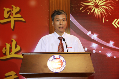 院长庄群华在会上发表了以“心怀梦想,扬帆远航”为主题的讲话,他首先代表全体教职员工向全体2015届毕业生圆满完成学业顺利毕业表示热烈的祝贺,他列举了民用航空系傅越同学、经济与管理系庄海呈同学、艺术设计与建筑工程系钱羽同学以及电子与信息技术系沙琛灿同学等优秀毕业生的先进事迹,高度肯定了2015届毕业生在我院三年来刻苦求学努力拼搏所取得的成绩。