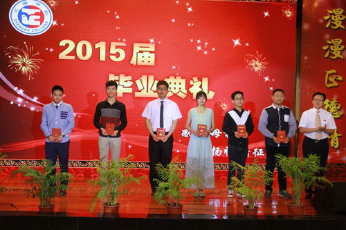 赵凯雷宣读《关于表彰2015届毕业生荣誉称号获得者的决定》并向优秀毕业生代表颁发荣誉证书