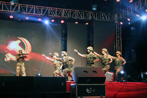 军训承训教官们和南京航空航天大学的部分同学也分别上台为大家表演了节目,他们的精彩表演赢得台下师生热烈的掌声,将晚会气氛推向高潮。