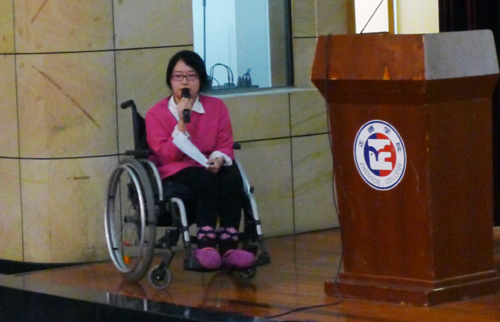 2014级会计与审计专业肖荷花同学是一位身残志坚的好学生,从小就成为孤儿的她不幸因一次意外让她不能再站立起来正常的学习与生活,但是在社会和他人的帮助和自己的不懈努力下,她克服重重困难,像正常同学完成学业,取得较好的成绩。她的刻苦拼搏精神以及开朗阳光的心态感染了身边一大批同学。报告会上,她用自己的切身经历告诉同学们要珍惜当前美好的大学时光,好好学习、勇于拼搏,在面对困难面前,永不言弃、永不放弃。
