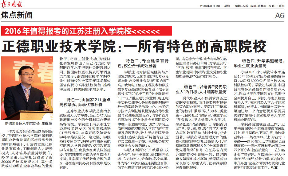 8月10日,扬子晚报焦点新闻专版(A6版)上,刊载了该报记者对我院院长庄群华的专访。现全文刊发该专访。