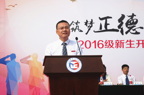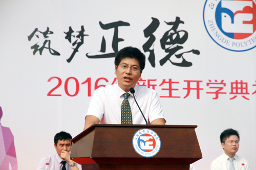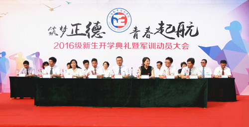 9月14日上午,我院隆重举行“筑梦正德 青春起航”2016级新生开学典礼,院长庄群华,院党委书记、副院长左彤云,副院长刘小廷、赵凯雷,院长助理赵湘莲、王健以及各单位主要负责人出席典礼。左彤云主持了开学典礼。