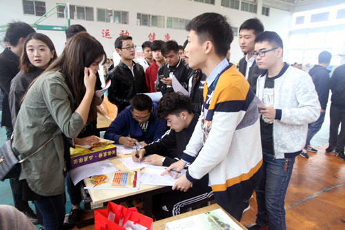 10月20日上午,院经济与管理系和艺术设计与建筑工程系在院运动馆举行2017届毕业生专场招聘会,1300余名学生携带简历积极参与应聘和面试,场面火爆。