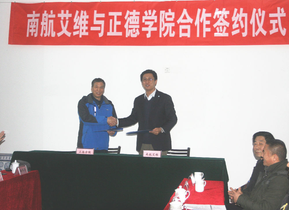 会上南航艾维公司常务副总李海介绍了南航艾维公司近期的发展,总结了前期学员在艾维飞行实训的训练及考证情况;并对我院输送学生的精神面貌、生活作风等方面给予了较高评价,该批学员已与相关公司签署工作协议,获得用人单位的好评。刘小廷副院长首先对我院与南航艾维公司的成功合作表示了祝贺,并对未来双方在直升机驾驶技术、飞机机电设备维修专业的深入合作提出了更高的期望,他希望经过双方努力,培养出符合行业标准要求的高素质人才,使学校、公司、学员三方都能共赢。双方在热烈的掌声中共同签署了合作协议。