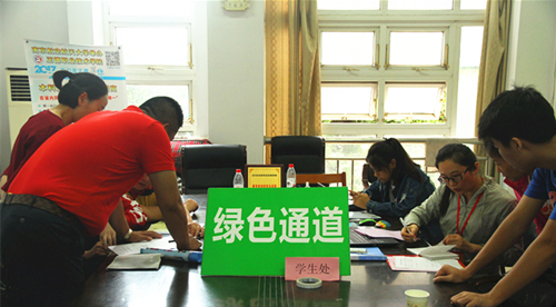 考虑到很多远途的新生在9月2日就提前赶到南京准备报到,学院人性化安排,决定9月2日中午就开始接待新生报到。中午十二点,各系新生接待点工作人员全部就位,迎新的展板、海报等也摆放到位。电子与信息技术系、经济与管理系在报到点到新生宿舍的道路沿线设置指示牌,方便新生家长完成报到全部手续;艺术设计与建筑工程系接待点外十几米长的路上,摆放着图文并茂的系部介绍,吸引了许多家长的视线,工程造价、建筑室内设计、新闻采编与制作等专业的骨干教师在现场回答家长和新生的提问,介绍专业人才培养特色,让新生进校第一天对专业有了初步的了解;汽车工程系在接待点设置了该系往届优秀毕业生介绍,坚定学生专业学习信心;机电工程系派出了6名志愿者负责新生信息录入及采集,15名外场志愿者负责新同学办理报到手续,入住寝室;民用航空系新生接待点设置在民航实训中心,负责新生接待的志愿者身着空乘或酒店管理专业制服,场面非常“养眼”,现场的航空模拟舱吸引了很多新生家长驻足参观。
