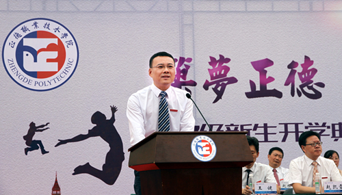 庄群华院长在大会上发表讲话,他首先代表全体师生员工,向新同学表示最热烈的欢迎!他简要介绍了学院基本情况及办学成绩,并表示,学院将全力为学生成长成才提供更加广阔的舞台和空间。同时,庄院长还对新同学提出了三点希望和要求:第一,练成一副好的技艺,这是终身的饭碗。当今社会,最缺乏的就是技术人才,希望大家通过不断地学习,把提高职业技能和培养职业精神高度融合起来,提升自身的综合素质和职业能力,为走向社会奠定安身立命之本;第二,养成一副好的品行,这是终身的灵魂。同学们在追求知识技能的同时,要学会宽容和理解、学会责任和担当、学会交流与合作,学会感恩与回报,提高心理素质,完善健康人格,积极进取,永不气馁;第三,锻炼一副好的身体,这是终身的幸福。有了强健的身体,才能以饱满的热情迎接大学生活,以充沛的精力完成大学学业。希望同学们培养良好的生活习惯,走出宿舍,走进操场,走向阳光,在这里成为运动健将,为终身的幸福打好基础。