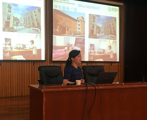 李宏博士首先向学生们介绍了我院与“曼大”两年专升本的项目计划,接着,李宏博士就“曼大”的地理位置、学校历史、院系设置、学术水平等整体概况作了详细的说明,让同学们了解到“曼大”作为最早的平民大学,有着194年的历史,诞生了许多学术巨擘。随后,李宏博士用图片形象地向同学们展示了“曼大”留学生的宿舍环境、丰富多彩的科研和学习生活、展示了多位校友在“曼大”的学习经历和获得的成就,所讲所展之处都紧紧吸引住同学们的眼光。