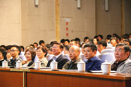 江苏省委原副书记、江苏省文学艺术界联合会名誉主席顾浩,著名越剧表演艺术家、国家一级演员、“竺派”艺术的继承人竺小招,院党委书记江国华,副院长薛忠云,南航大研究生院副院长郑祥明,南航大艺术教育中心主任杨莉莉与近400名师生共同观看本场演出。