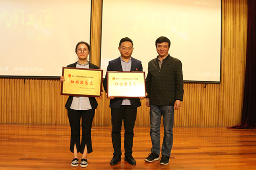 梁飞,陆松,祖国,刘翔分别为红旗团支部、优秀团员标兵、优秀团干部代表、优秀团员代表颁奖