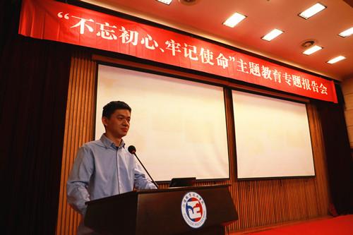 报告分为三个部分:一是从马克思主义的历史背景和十九大召开的现实背景出发,全面认识“不忘初心、牢记使命”的提出;二是结合党的历次代表大会主题,尤其是近期香港修例风波发展应对,从党史、新中国史看中国共产党践行初心与使命;三是从“审视初心,加强政治学习;增强本领,提升业务素质;砥砺前行,锤炼党员意志”三个角度,结合自身思考,谈了学习体会。他认为,作为教师,初心就是教书育人。作为在正德奋斗了17年的老员工,学院“以人为本、质量第一、服务社会”的办学宗旨、“育人为本,成才明志”的校风,早已浸入每一代正德人的骨髓。作为正德的党员教师,通过“不忘初心,牢记使命”主题教育,不忘立德树人初心,牢记人才培养使命,进一步加强思想政治学习,坚持开拓进取、与时俱进的创业精神,用扎实的工作作风、务实的工作成绩为推进伟大事业的继往开来作出新贡献。
