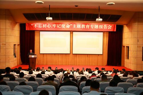 10月29日下午,按照我院“不忘初心、牢记使命”主题教育整体部署,全体党员在报告厅,围绕“不忘初心与使命,继续前行——学习党史和新中国史”主题,开展“不忘初心、牢记使命”主题教育专题报告会。报告主讲人为基础教育系副主任任志远。学院领导,全体中层干部,全体党员参加集中学习。院党委委员、组织人事处处长刘玉宝主持会议。