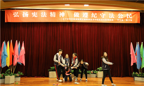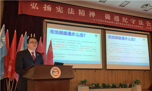 在2019年12月4日第六个国家宪法日当天,为进一步弘扬宪法精神,厚植爱国主义情怀,增强师生的法制意识,我院与江宁经济技术开发区检察院共同开展国家宪法日宣传教育活动。