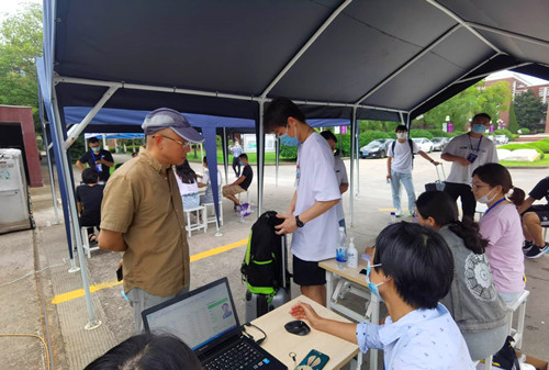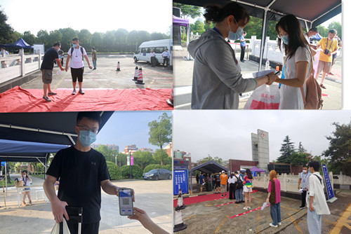 返校当天,各相关单位工作人员一大早就陆续到岗就位,开始做好学生返校各项工作。学生们拉着行李箱,戴着口罩,在校门口接受严格测温、核验进校码、扫描健康码、递交返校承诺书等流程之后进入校园,工作人员耐心细致,现场井然有序,各项工作有条不紊地开展。
