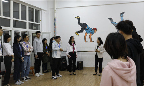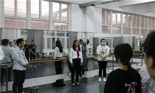 10月14日下午,副院长任慈、学生处处长祝佳俊、团委书记黄晓帆、相关系副主任及辅导员一行15人,来到第六届艺术展演排练场地,看望正在积极备战的我院师生并做赛前动员。