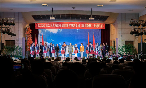 为引领学生弘扬优秀民族文化,丰富校园文化生活,提高学生艺术修养,10月22日晚江苏省扬剧团来到我院,为师生带来了扬剧《湖湾金秋》。副院长任慈、我院师生代表、军训教官代表近400人共同观看本场演出。