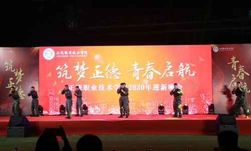 晚会在音乐协会表演的《一路向北》中拉开序幕。承训教官组成乐队自弹自唱的《渴望光荣》,引发新生的喝彩连连。院大学生艺术团以我院优秀毕业生、大国工匠顾春燕事迹为原型编曲编舞的女子群舞《雷达之眼》和弓箭社身着传统服饰带来的箭阵与射艺,体现出我院青年传承经典、发扬创新的文化内涵。