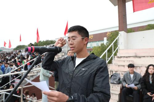 入场式完毕后,全场师生起立,在庄严的国歌声中,五星红旗冉冉升起。赵凯雷副院长致开幕辞。汽车与机电工程系唐祥鸿同学代表运动员宣誓,基础教育系高伟老师代表裁判员宣誓。