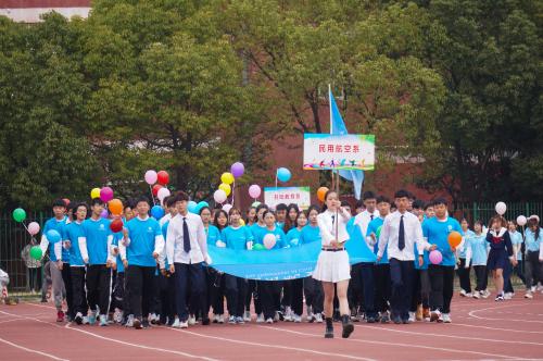 上午8点30分,运动会开幕式在热烈欢快的气氛中拉开帷幕。在校旗、校徽的引领下,前导队和各系学生及教职工组成的方队伴随着雄壮的《运动员进行曲》依次入场。各系方队精神抖擞,步伐矫健,当行进到主席台前时,各方队或以欢快的舞蹈,或以变换的队形,或以鲜明的色板,或以嘹亮的口号,既呈现了系部特色,又彰显了青春的阳光。当教职工方队意气风发,昂首通场时,台上全体领导起立,向老师们鼓掌致意。