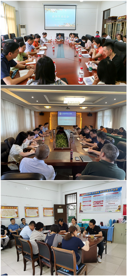 为庆祝第37个教师节,9月9日至10日,我院组织召开教师节座谈会,院长庄群华、党委书记江国华、副院长江爱华、赵凯雷、任慈分别前往全院各单位参加座谈。