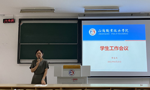 9月29日,我院在1103教室召开本学期第一次学生工作会议,副院长任慈、院长助理王健出席会议,全体学工干部参加会议,会议由学生处处长祝佳俊主持。
